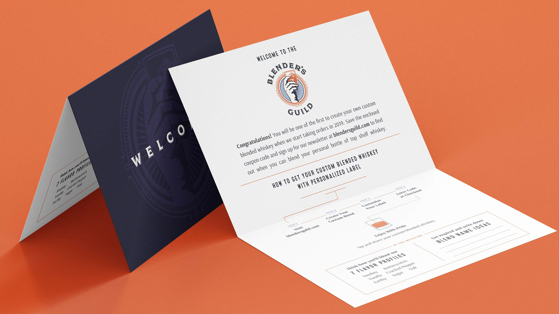 Branding, package design, and collateral design for a personalized, custom, premium whiskey brand. The goal was to offer a unique custom product while making the customer feel like they were now part of a selective club as opposed to just buying a bottle of alcohol. The customer would be able to name their custom whiskey as well as date the time it was blended.