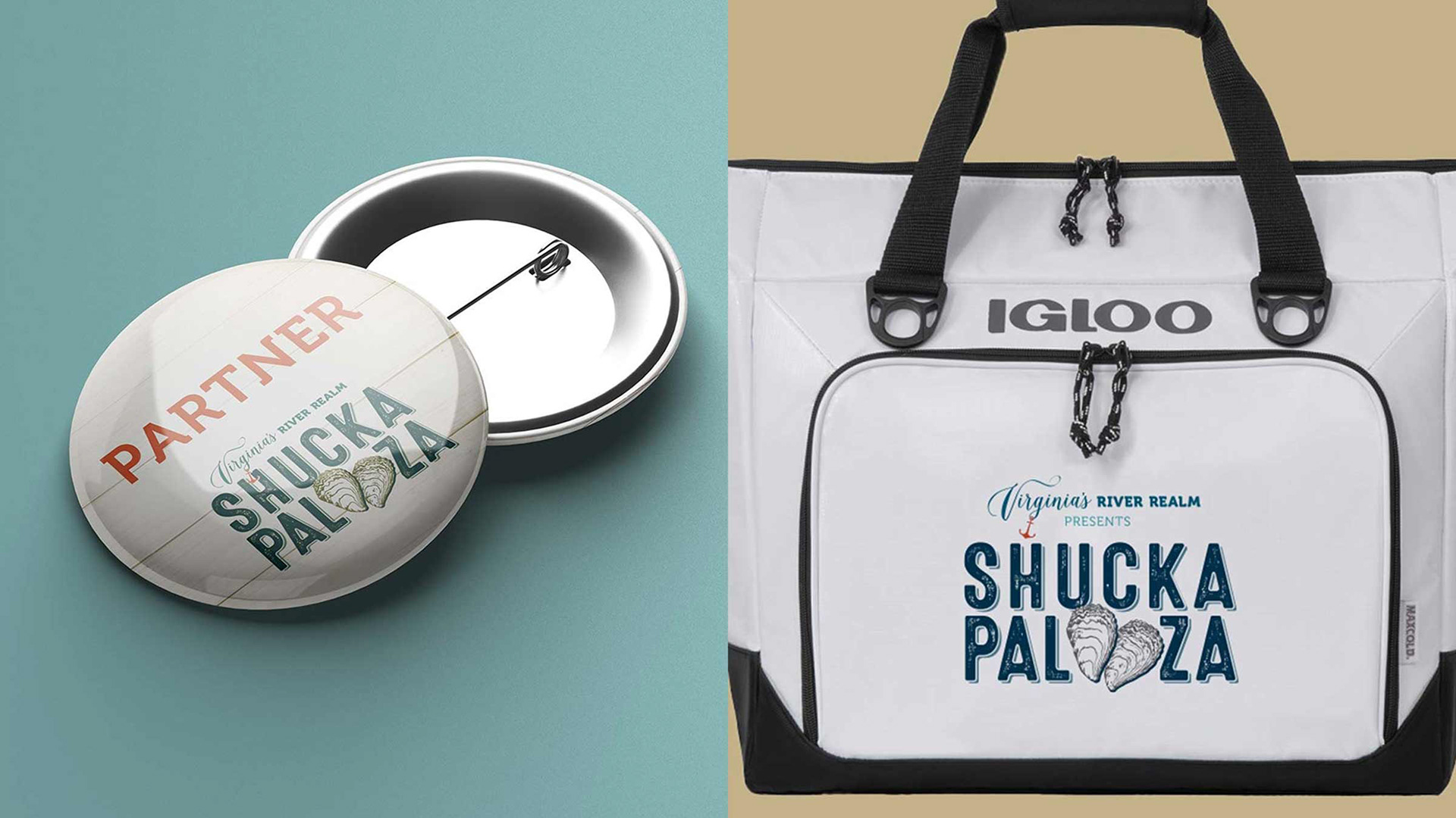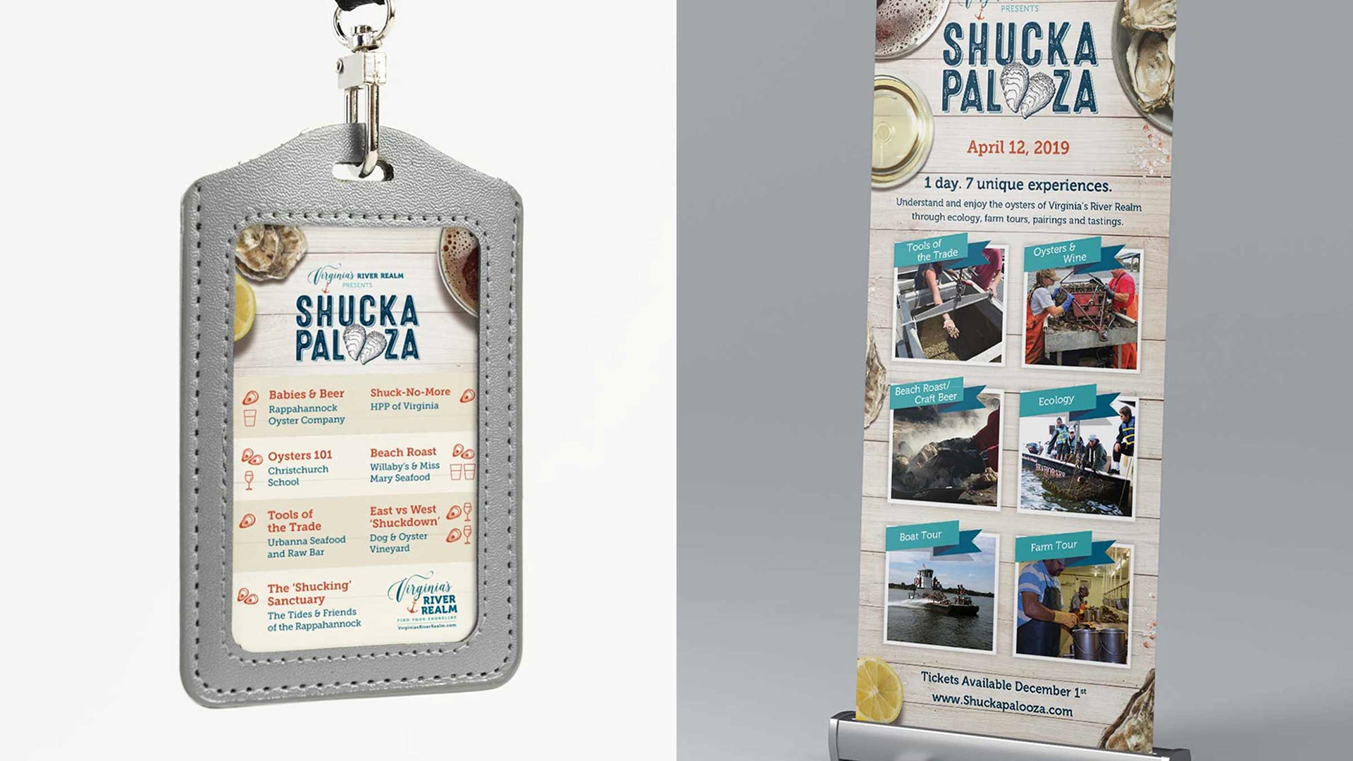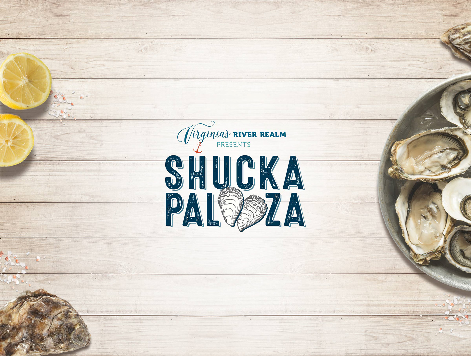 Identity and collateral design for a regional culinary event in Virginia's River Realm. The event uses oysters to promote ecology education, local business interactions, product offerings from breweries, wineries, and restaurants, and visitation to the region.
